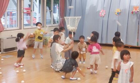 年少さんは・・・玉入れをして遊びました。はじめてにしては 上手。