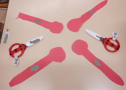 年中さんは・・・トンボの胴体をハサミで チョキチョキ