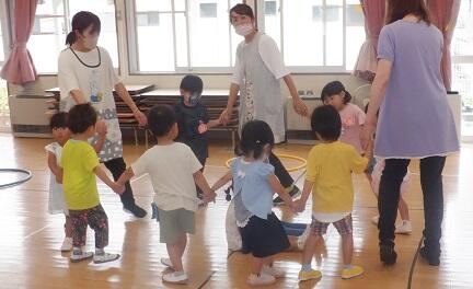 みんな 手をつないで 楽しくゲームをしていました。(成長!成長!)