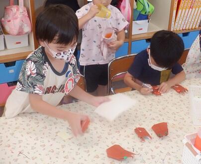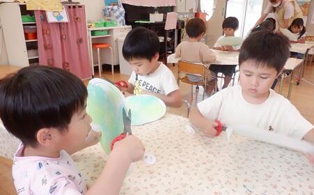 年中さん・・・教室で ハサミを使って はじめての丸切り