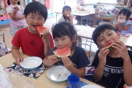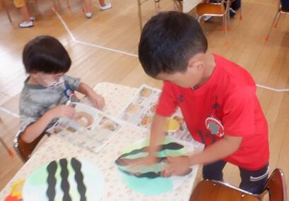 とてもきれいな色のスイカです。保育参観の時 ぜひ ご覧ください。