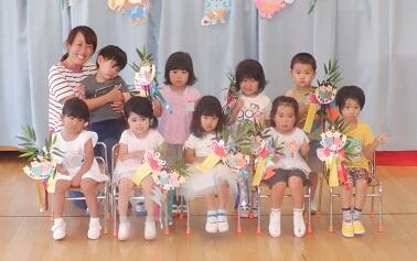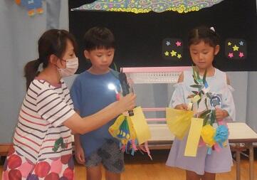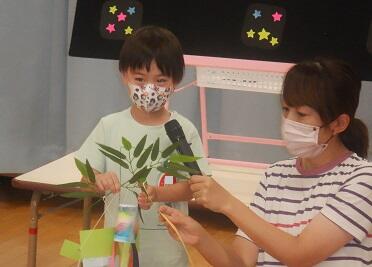 「たなばたさま」の歌を歌ってから・・・・願い事の発表です。