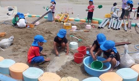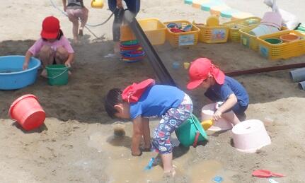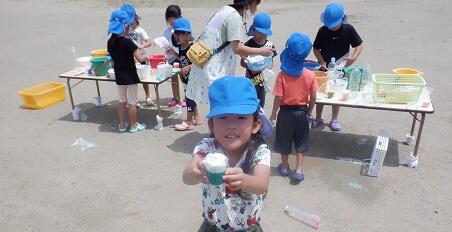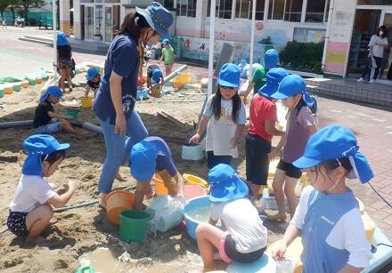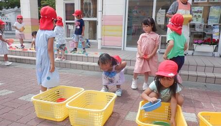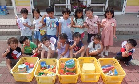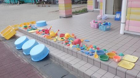 7月19日(水)年中さんが 砂場の道具を洗ってくれました。 下