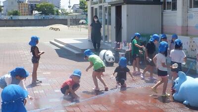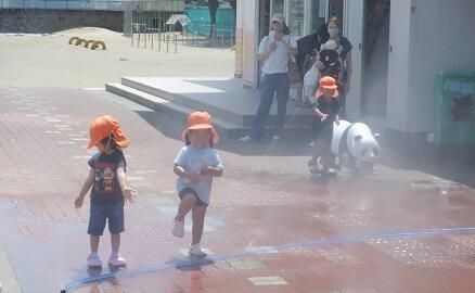 年少さんは・・・暑いので ミストシャワーで遊びました。