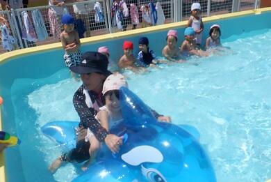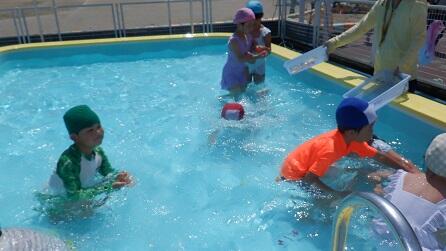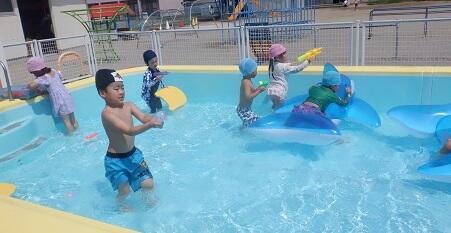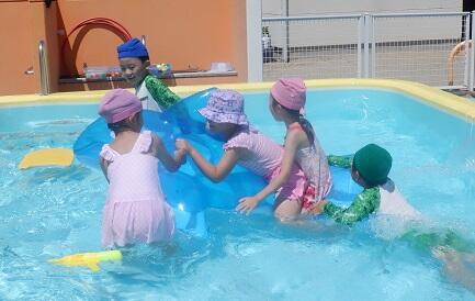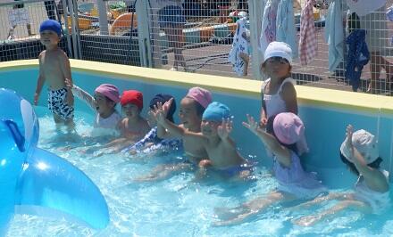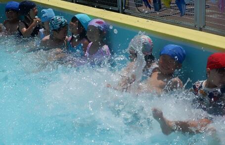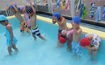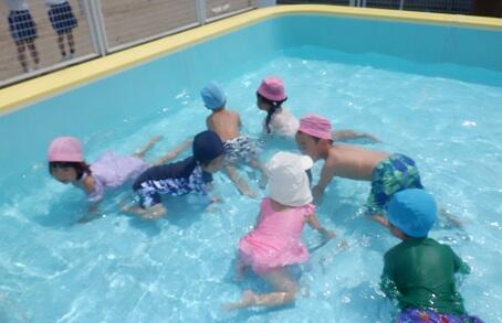 今日も暑かったです。プールが最高でした。下は年少さん達です。