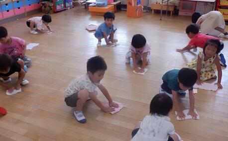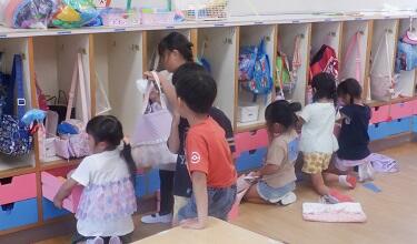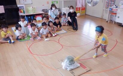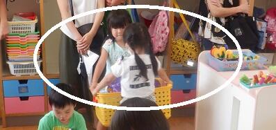 今日の年中さんは・・・お部屋の片付けをした後・・・