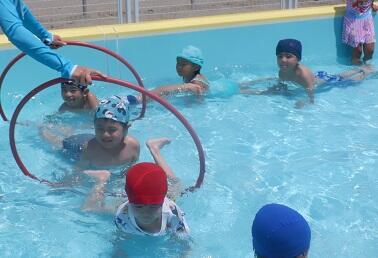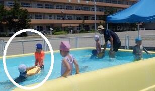 「~ちゃんって すごいね。水の中に 顔を入れられるんだ~」下