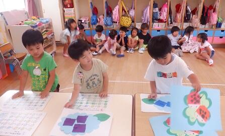 丸印・・・子ども同士で 教え合っています。まあ~ステキ!