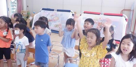 歌「ヤッホッホ 夏休み」を 楽しそうに歌う子ども達。(下)
