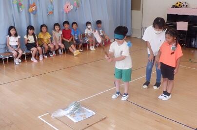 年中さんは・・・棒がスイカに当たるたびに・・・集まって・・・