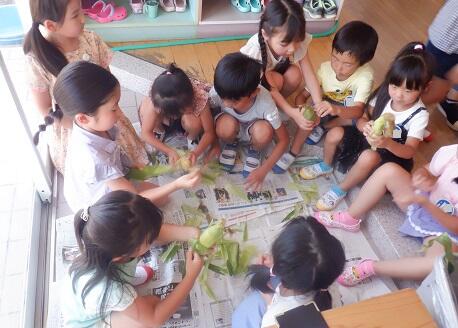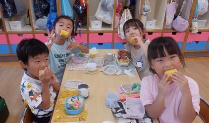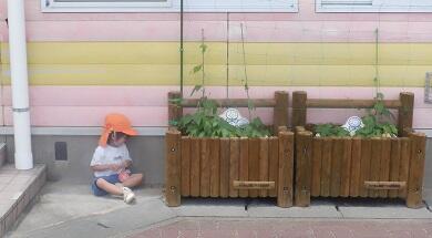 下は 年長さん。 今日 ミニトマトを収穫しました。
