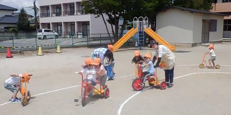年少さん・・・三輪車だって 一人で 乗れるようになりました。下