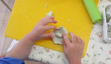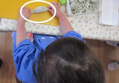 下の子は・・・粘土で ギョウザを作っていました。リアル!