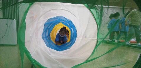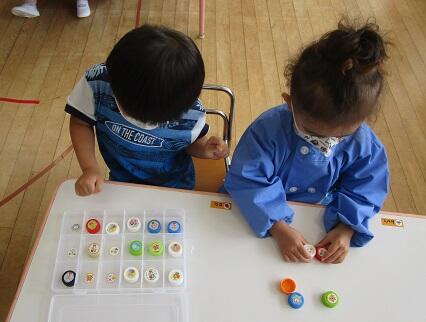 おまけ・・・ペットボトルのフタで遊ぶ年少さん。