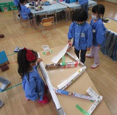 年長さんは・・・ビーズがスムーズに転がるように 考えて遊んでいました。