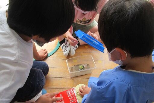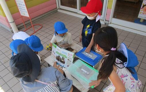 おまけ・・・年長さん達:ダンゴムシ コクワガタ アリなどを観察。