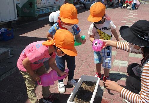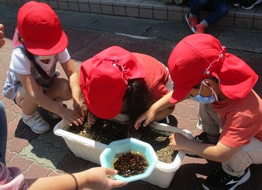 年少さん 年中さんは・・・今日は 種まき。