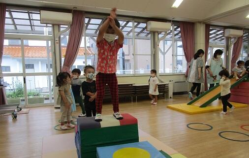 今日も・・・遊戯室では・・・年少さんが・・・・ジャ~ンプして・・・パン