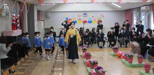 園長とアイコンタクトで 一緒にお辞儀をしました。