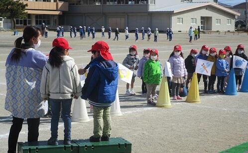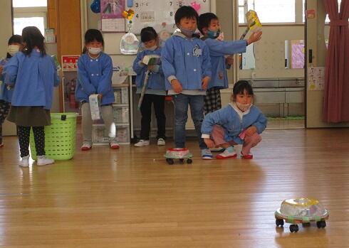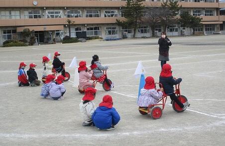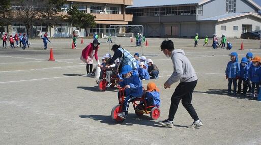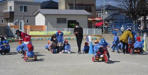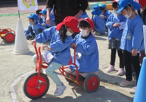 おまけ・・・・年長さんと 年少さんは・・・三輪車リレー。