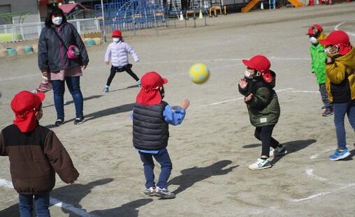 その頃、年中さんは・・・園庭で ドッジボール。