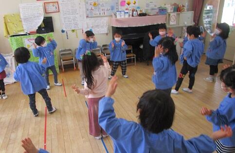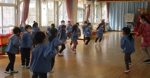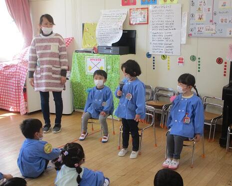 3月8日(火)年中さんは・・・明日のお別れ会のリハーサル。