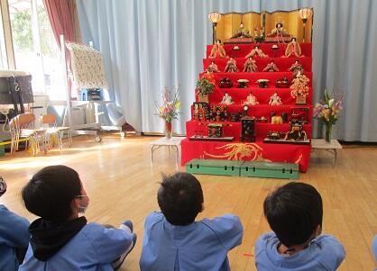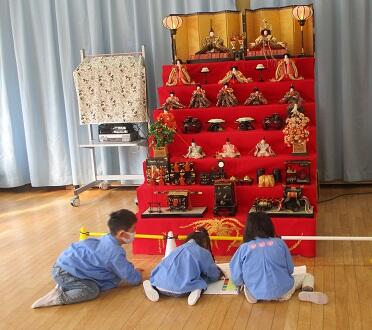 「きれいだね~」ひな人形に うっとりする?年長さんの男子。