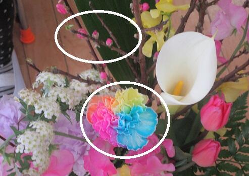 子ども達が気になったのが・・・・桃の花と・・・レインボーの花。