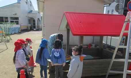 「みんなのおうち」の屋根の ペンキを塗ってくださいました。
