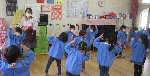 下は・・・クワガタ体操をする年中さんです。
