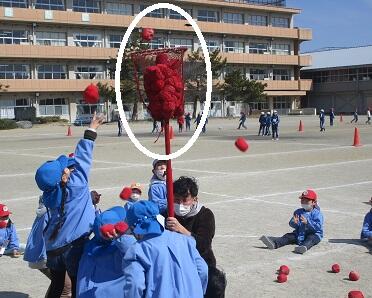 クワガタ体操で 体を温めた後は・・・・いよいよ 縦割り班対抗の玉入れ