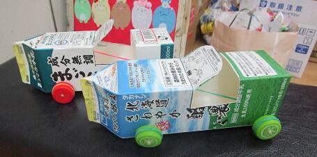 年少さんは・・・・牛乳パックで コマを作って遊んだり・・・・