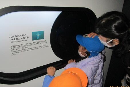 下は・・・・チンアナゴ( 下の方に ) に見入る子ども達です。