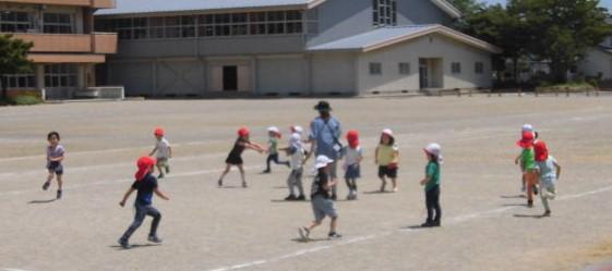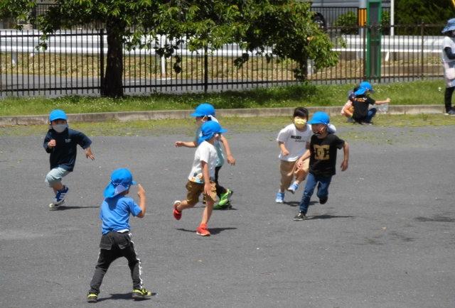 年長さんは、園庭で しっぽ取り。