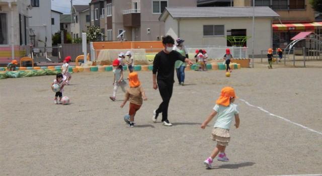 「待て~っ、待て~っ」とボールを追いかけている 年少さんがいました。