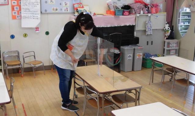 透明パーティションを設置(消毒)しています。( 大変なんですよ。 )