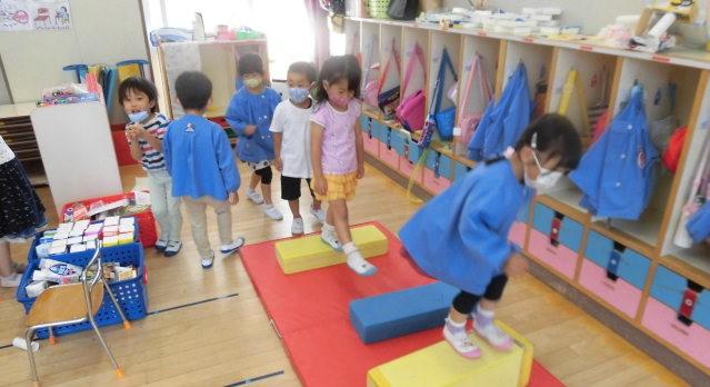 年中さんも・・・遊戯室で ミニ運動会?