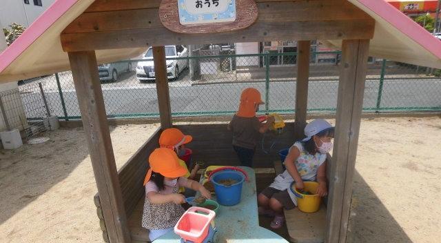 ( 蒸し暑いので 今日は マスクを外して 遊びました。 )