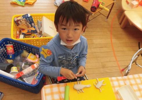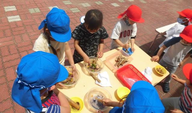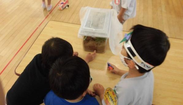 リアルなカブトムシを 年少さんに 粘土で作って見せたりする年長さんも
