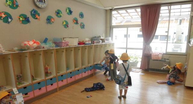 年長さんの教室では・・・・・引き出しの中も・・・・確認!