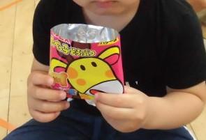 年少さんにも スペシャルなおやつ( 一人一袋のお菓子 )が出ました。