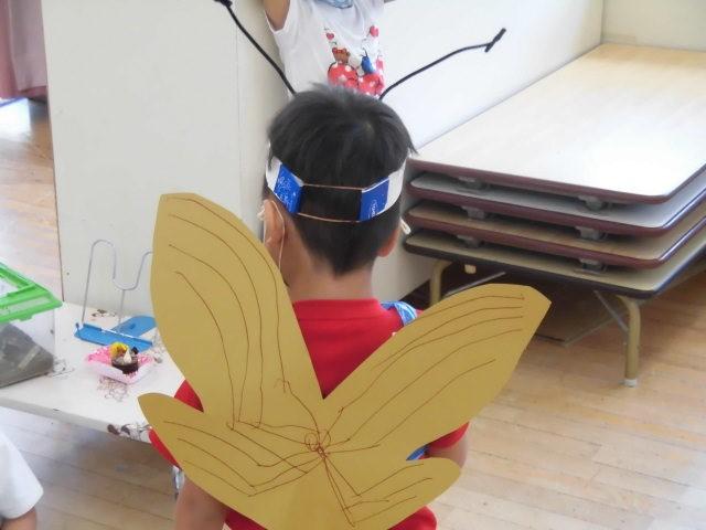 真剣に ハチになりきる子も・・・触覚もついています。