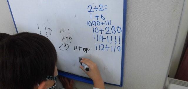 下は、真剣に 小学校ごっこ(算数の勉強)をしている子ども達です。