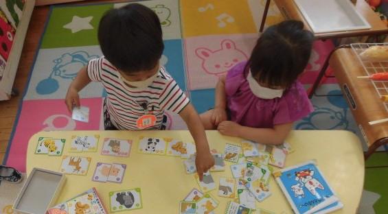 下は、真剣に 絵合わせをしている年少さんです。