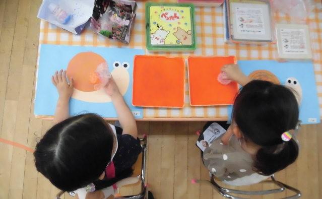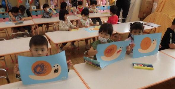 年少さんは、カタツムリの絵の続き。