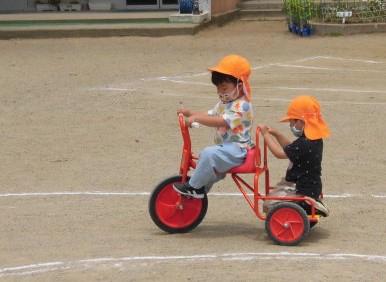 最後、甘え上手名人! 三輪車が止まっています。