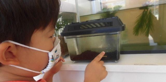 下は、真剣に カブトムシになりきる子どもです。