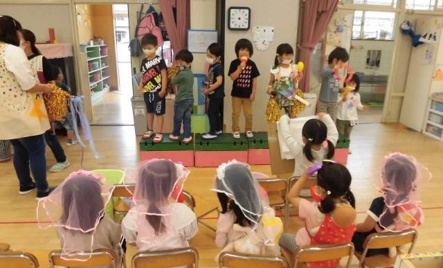 年長さんは、朝、特設ステージで