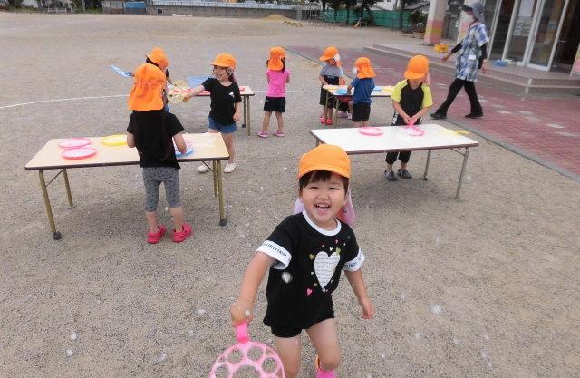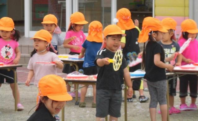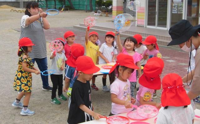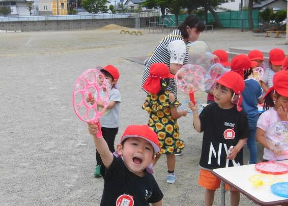 さて、今日は、シャボン玉遊びをしました。