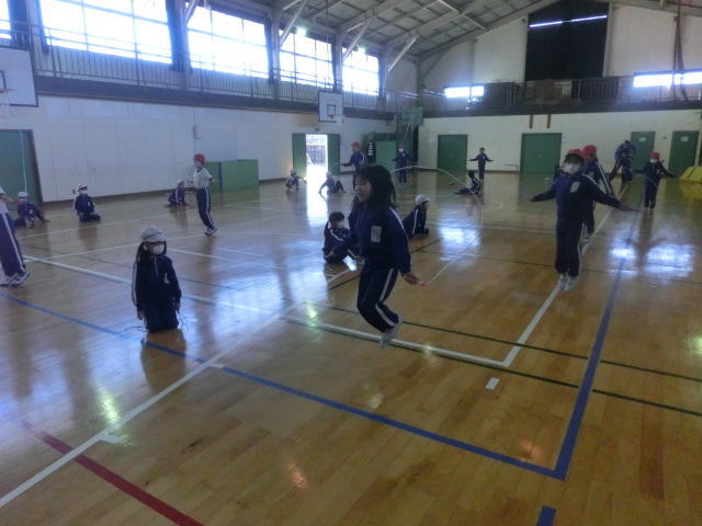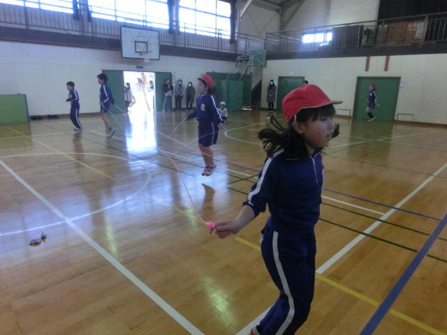2月12日(水)に1年生から3年生のなわとび記録会が開催されました。2校時1年生、3校時2年生、4校時3年生が実施しました。それぞれの種目を決められた時間以上跳べるかを競いました。今まで、朝の時間や大休憩に練習した成果を十分発揮することができました。保護者方々もたくさん応援にきていただきました。ありがとうございました。